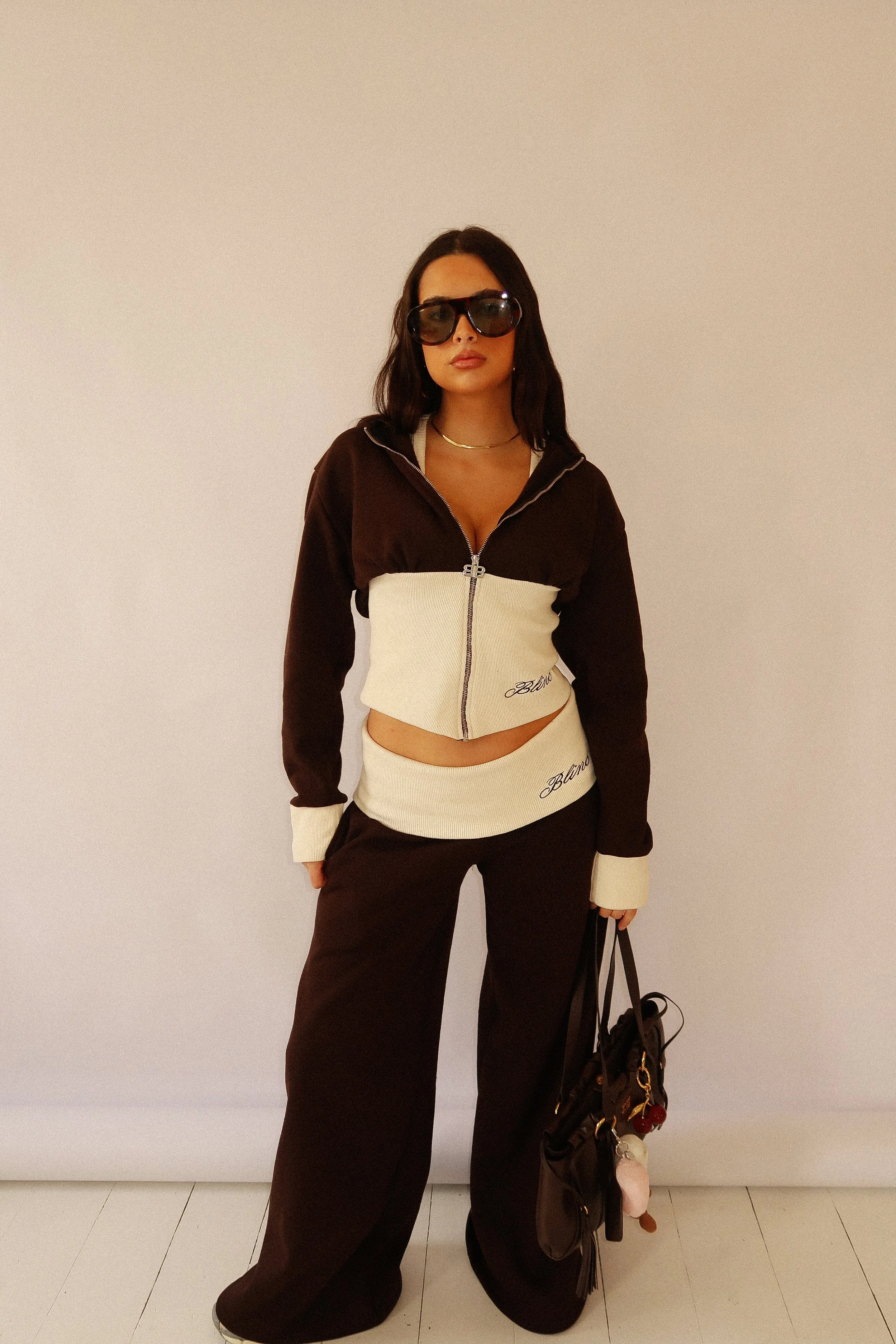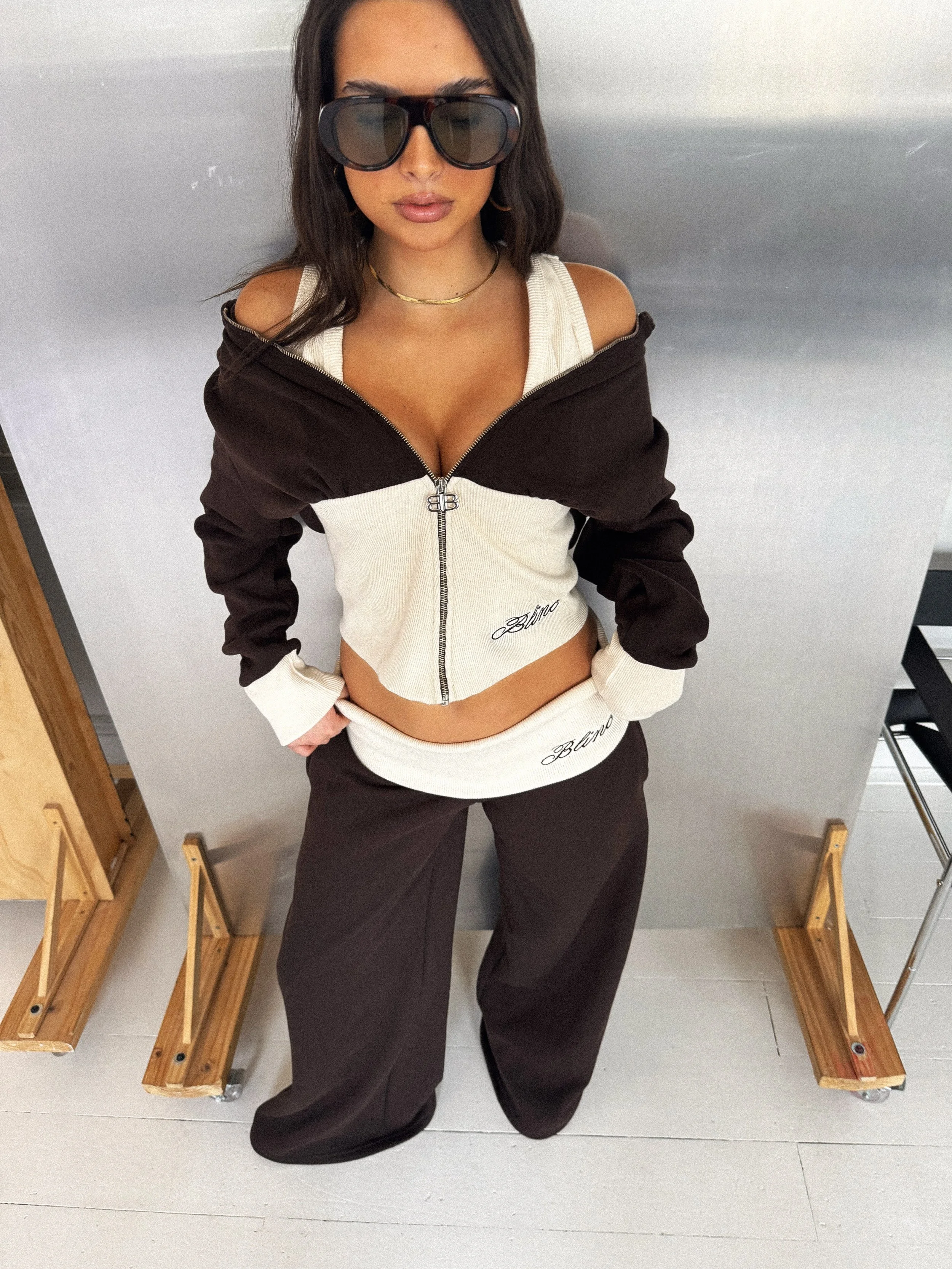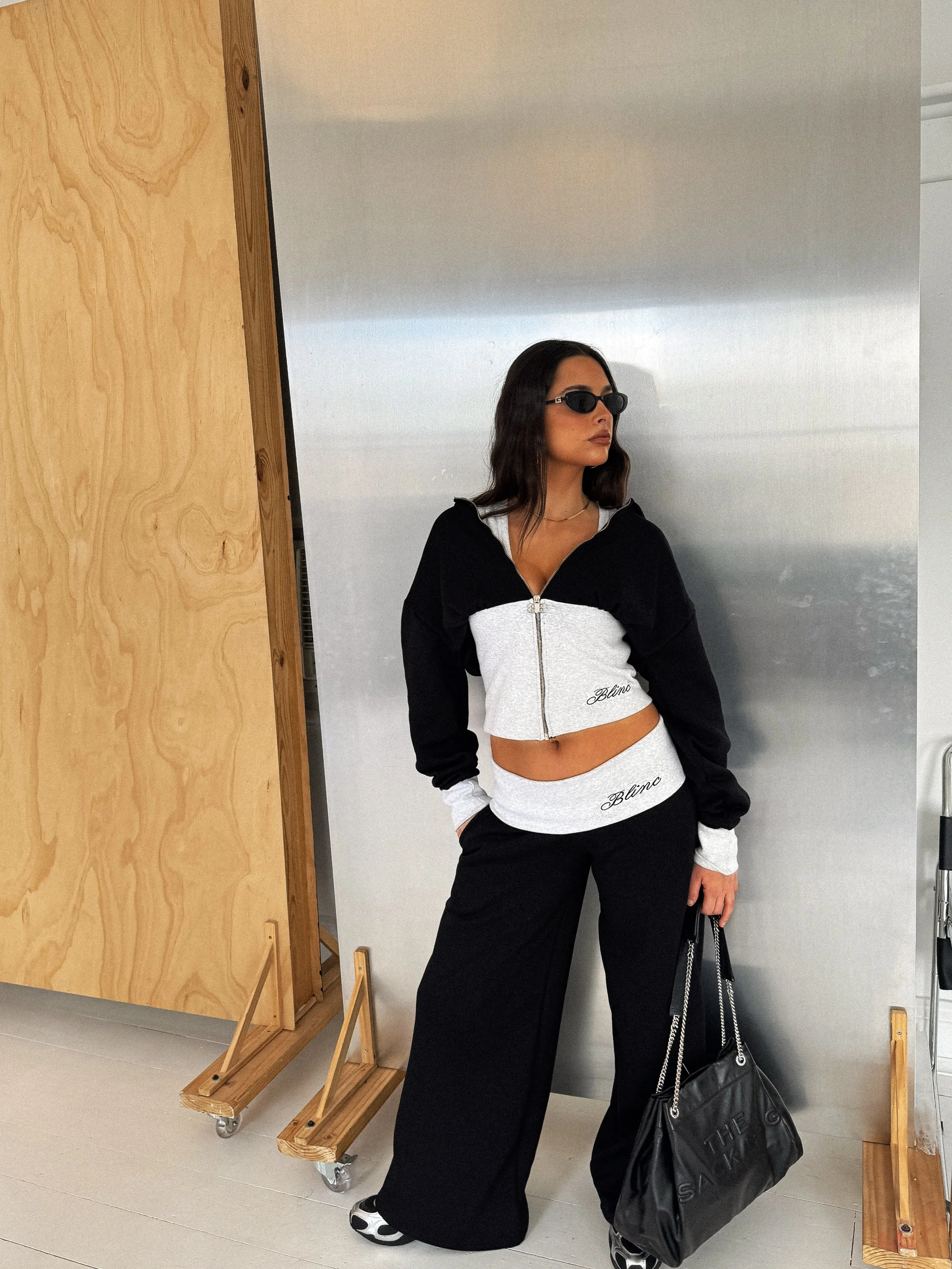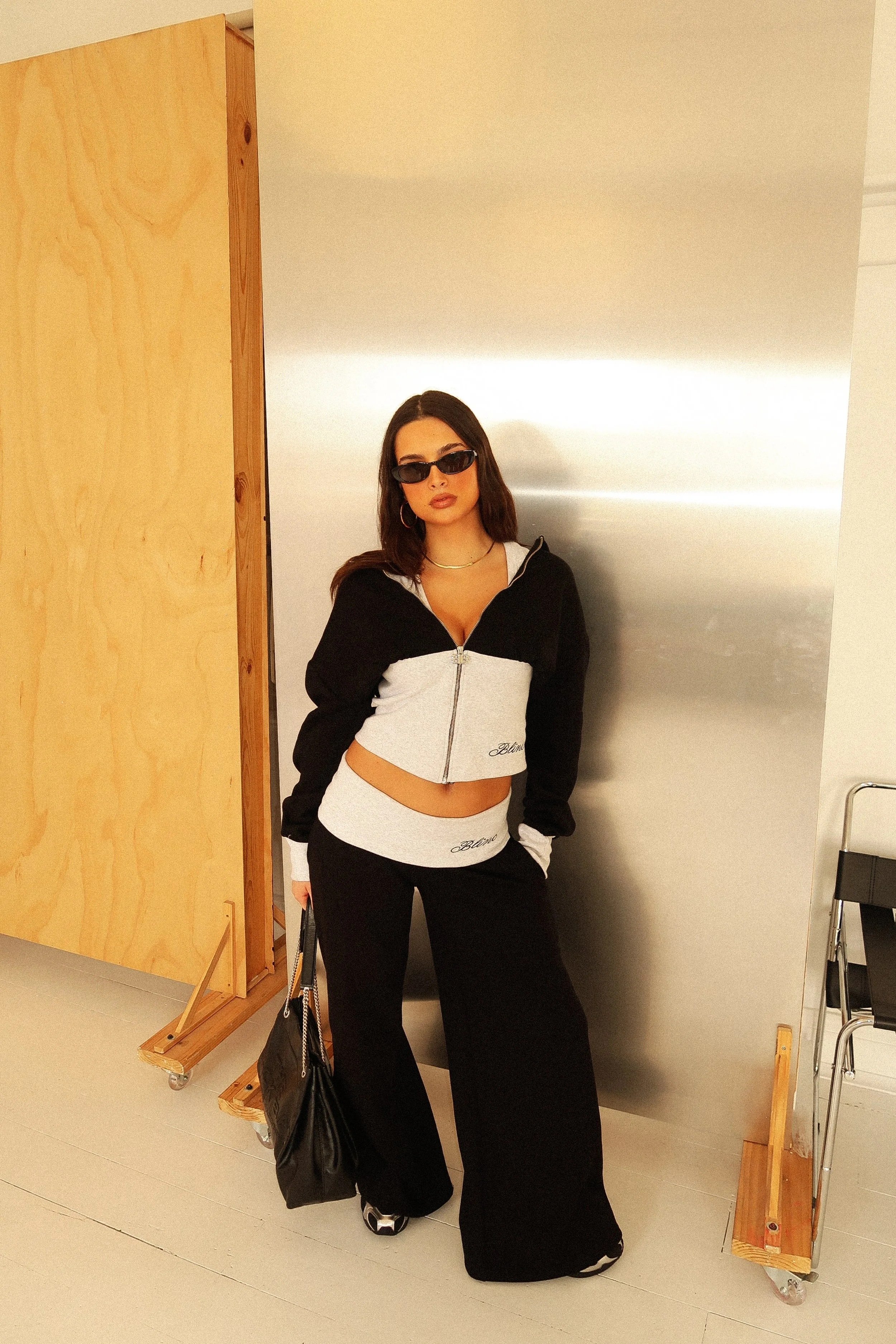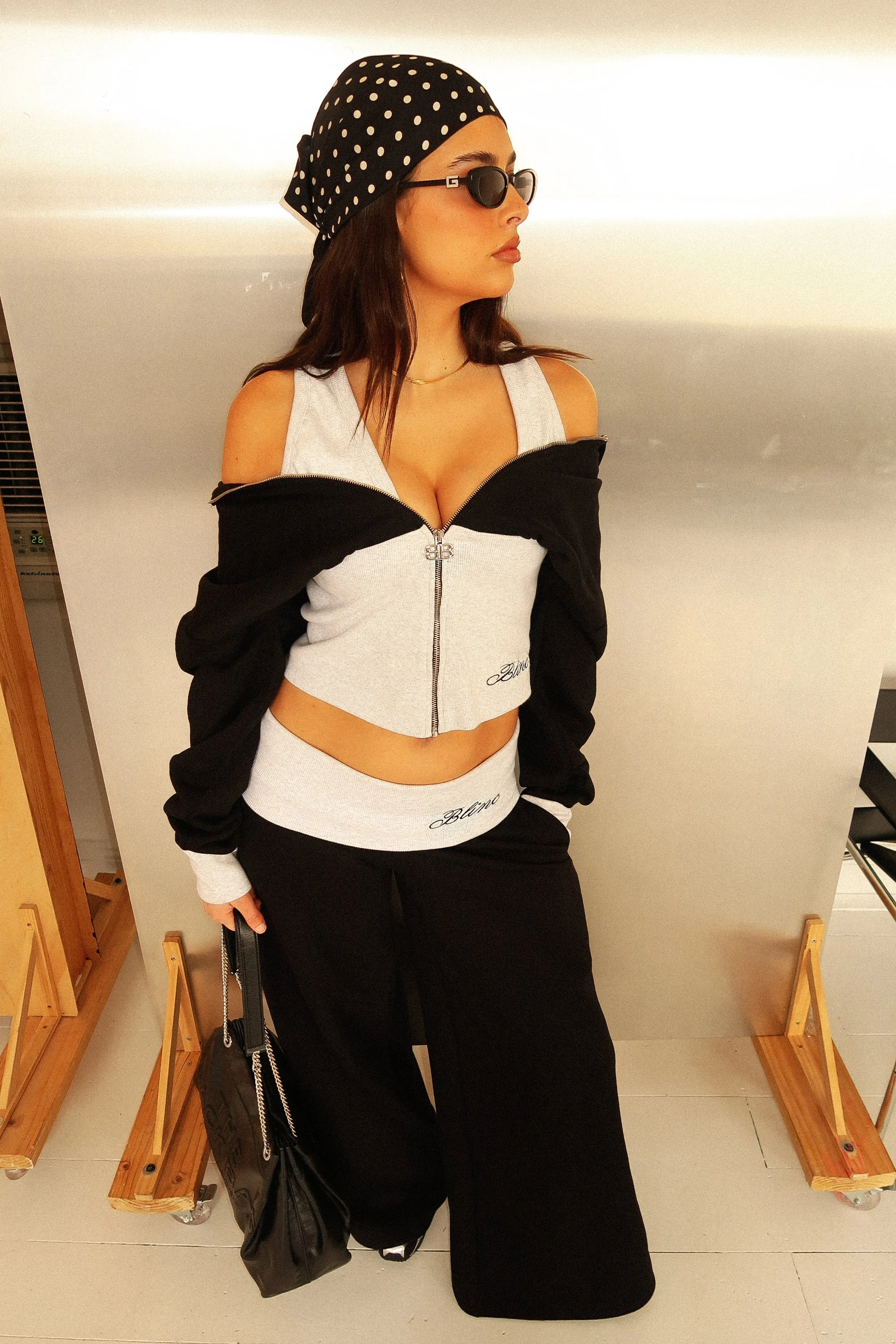 A blend of power mesh and satin panels creating the perfect contrast of fabric. Featuring a built-in mini skirt with slightly flared pants, adorned with our signature ‘B’ charm on the front. Surprisingly versatile and easy to wear, these pants are perfect for both winter and summer. They are the perfect addition to elevate an outfit with their unique look.